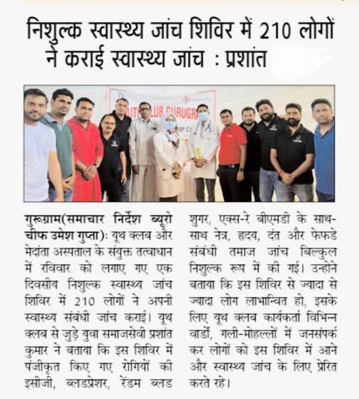 Youth Club Gurugram, in collaboration with Medanta, organized a Free Health Check-up and Awareness Camp for the community. Our mission was to promote the importance of regular health check-ups, early detection, and overall well-being.