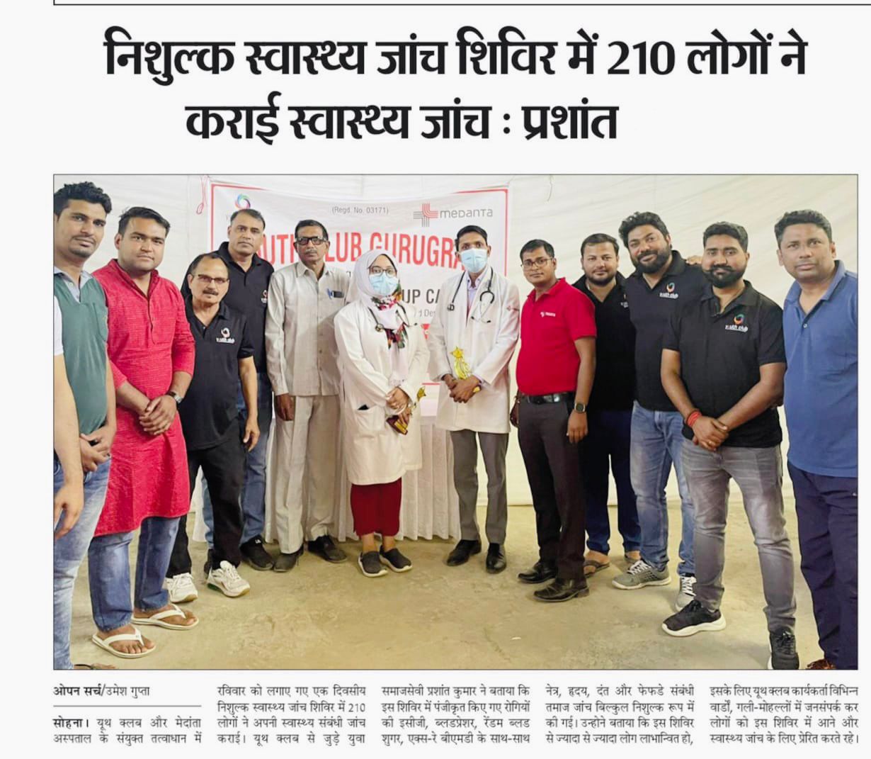 Youth Club Gurugram, in collaboration with Medanta, organized a Free Health Check-up and Awareness Camp for the community. Our mission was to promote the importance of regular health check-ups, early detection, and overall well-being.
